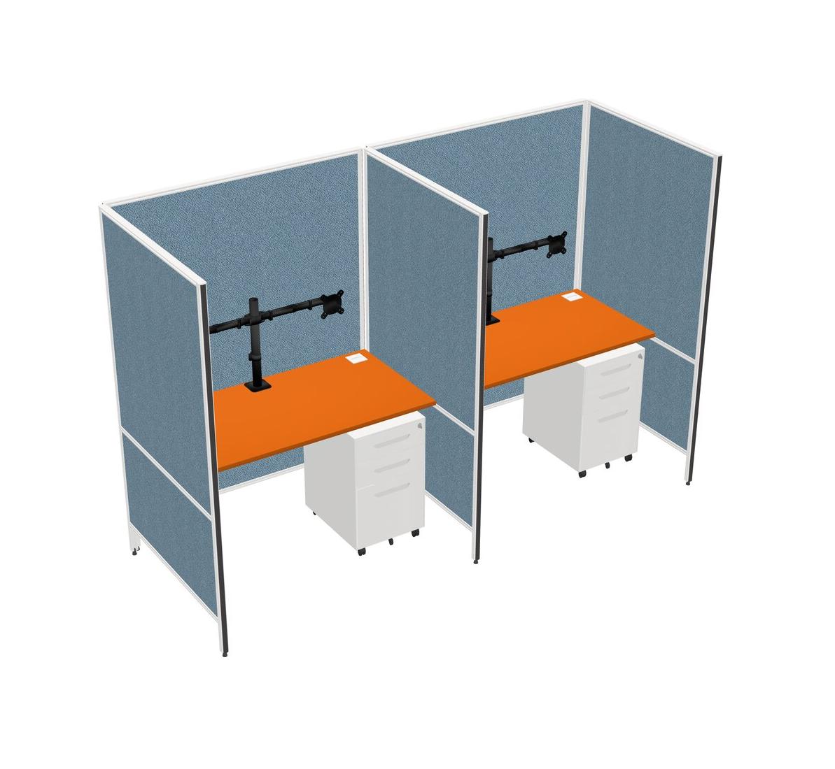 Orange Flexible Panel System For 2 + Metal Mobile Drawers + Monitor Arm (double Arms)