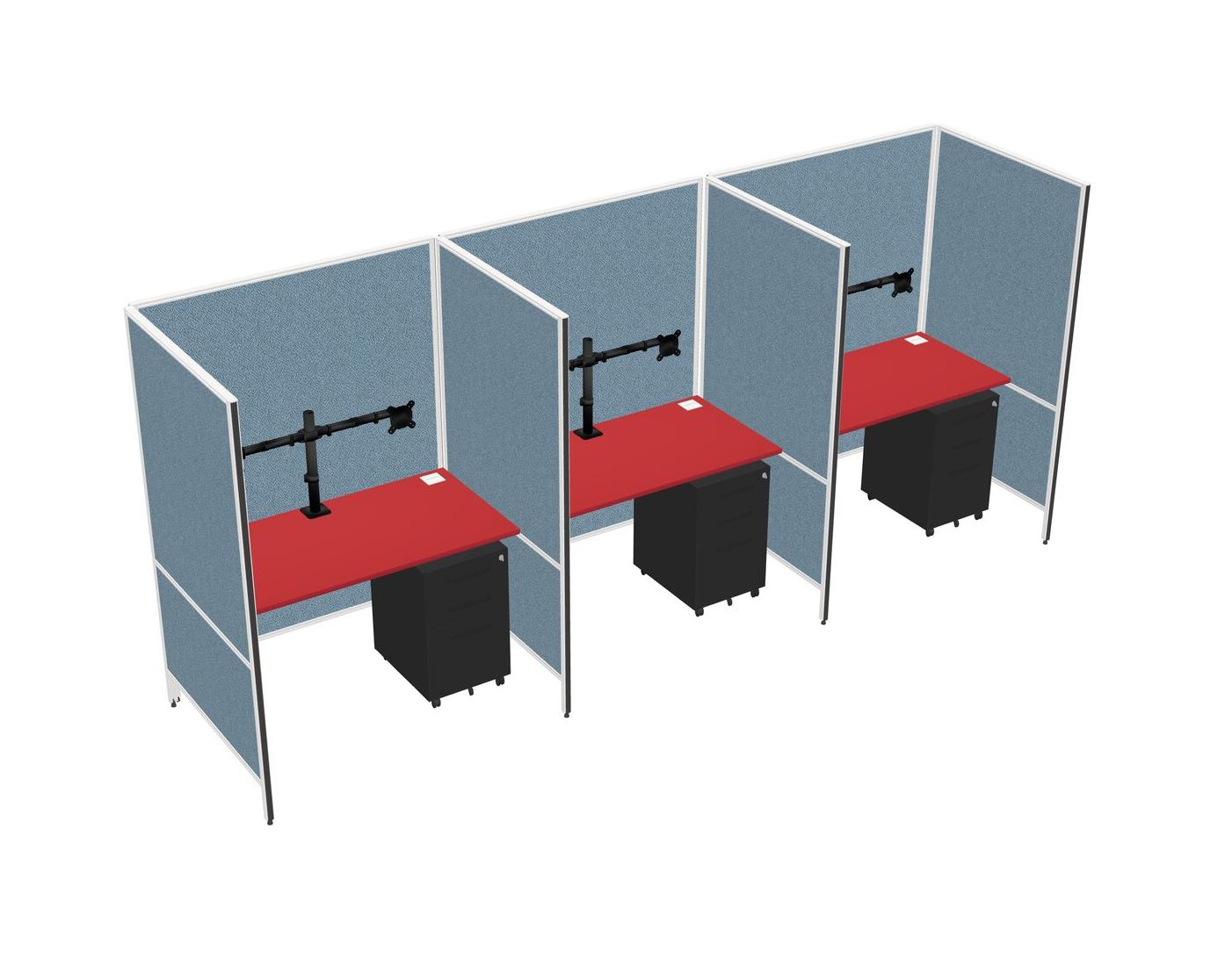 Prism Red Flexible Panel System For 3 + Metal Mobile Drawers + Monitor Arm (double Arms)