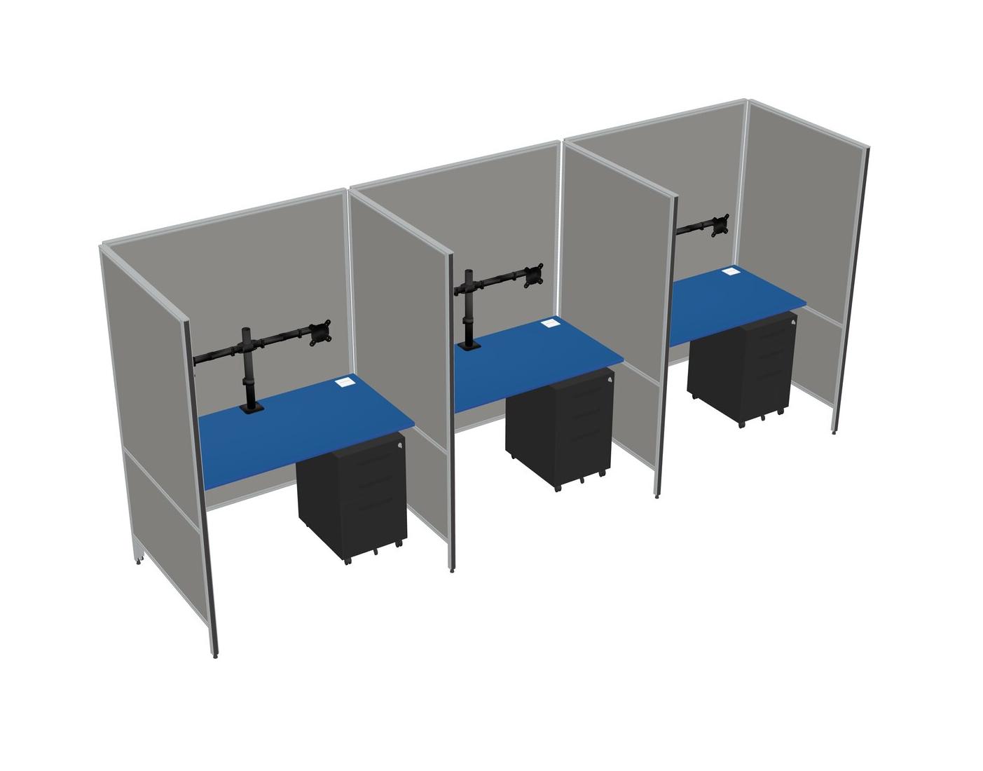 Prism Blue Flexible Panel System For 3 + Metal Mobile Drawers + Monitor Arm (double Arms)