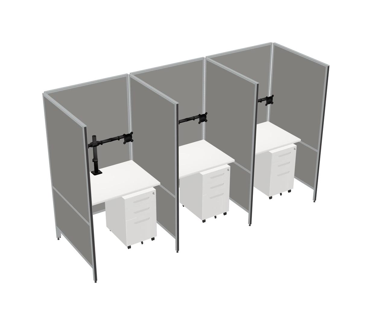 White Flexible Panel System For 3 + Metal Mobile Drawers + Monitor Arm (double Arms)