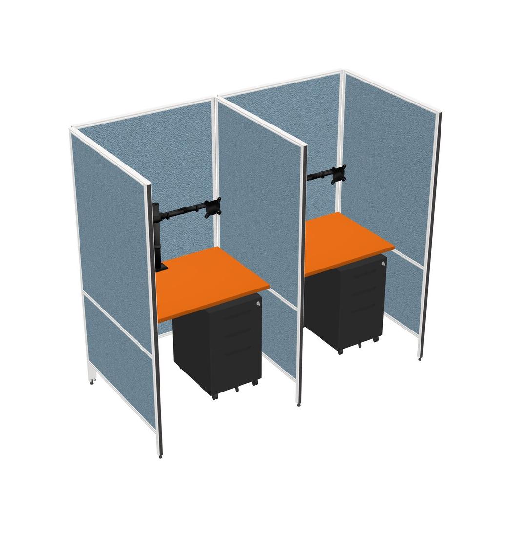 Orange Flexible Panel System For 2 + Metal Mobile Drawers + Monitor Arm (double Arms)