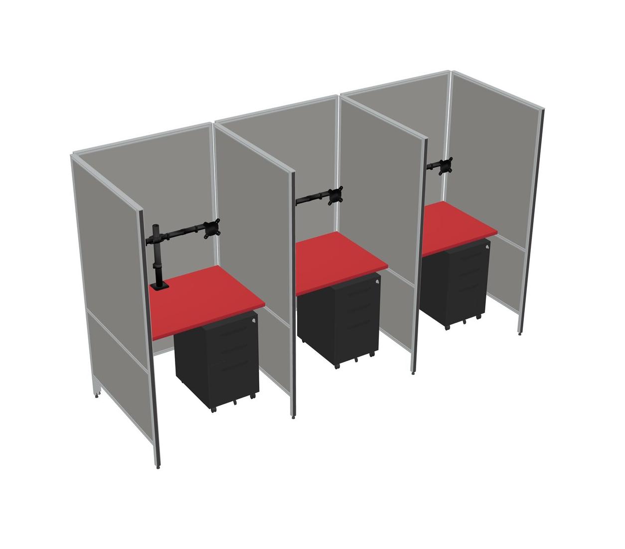 Prism Red Flexible Panel System For 3 + Metal Mobile Drawers + Monitor Arm (double Arms)