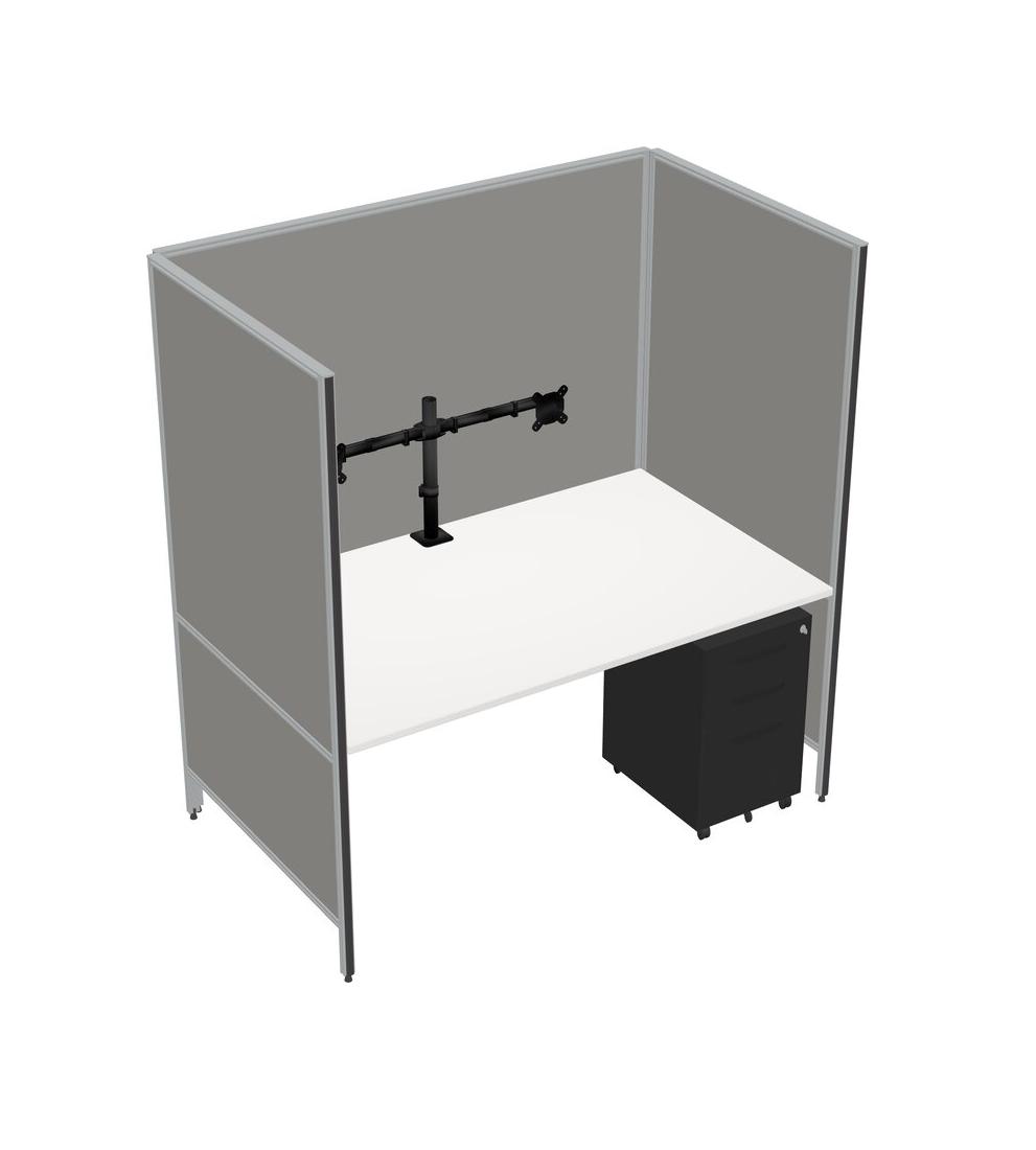 White Flexible Panel System For 1 + Metal Mobile Drawers + Monitor Arm (double Arms)