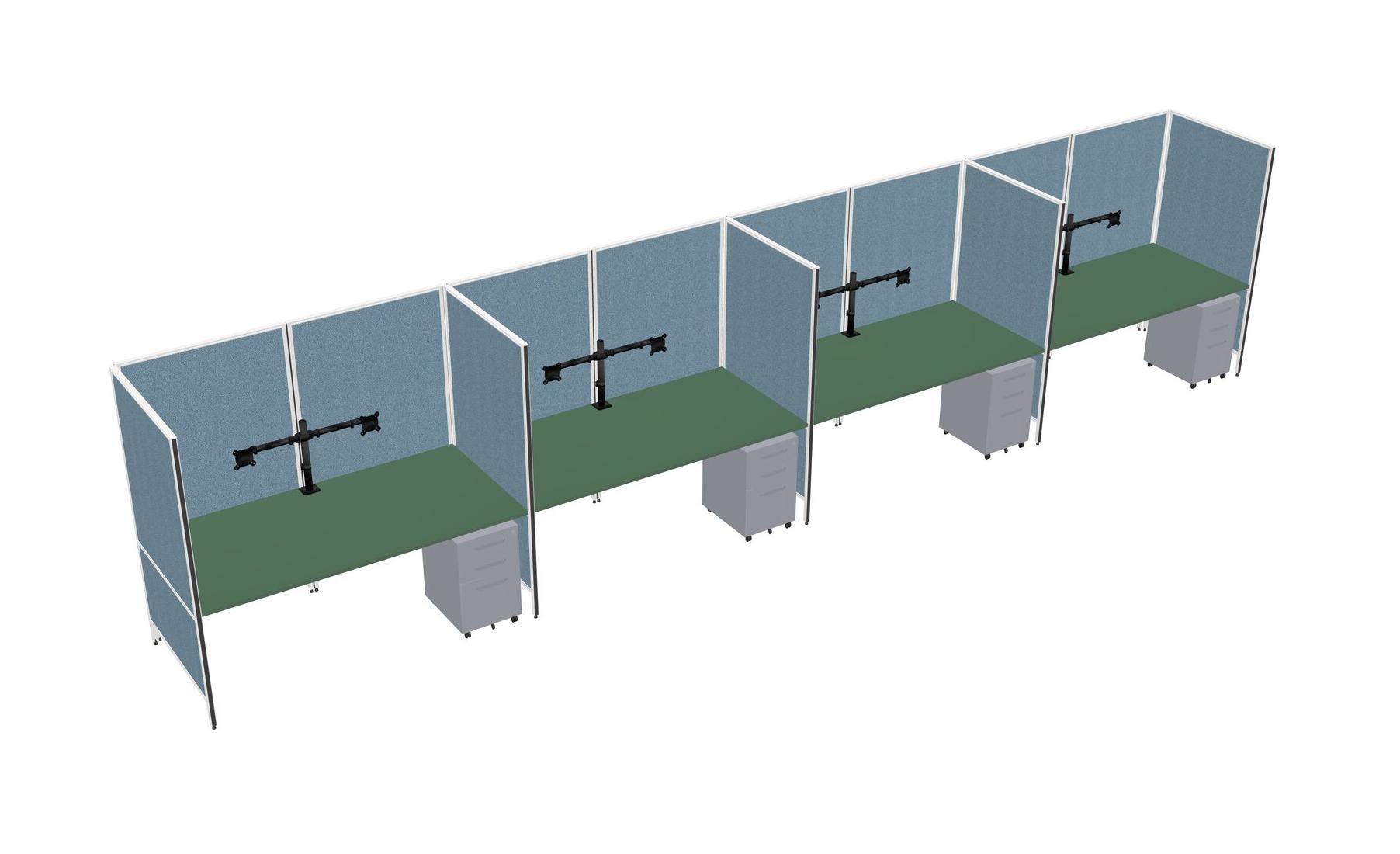Green Flexible Panel System For 4 + Metal Mobile Drawers + Monitor Arm (double Arms)