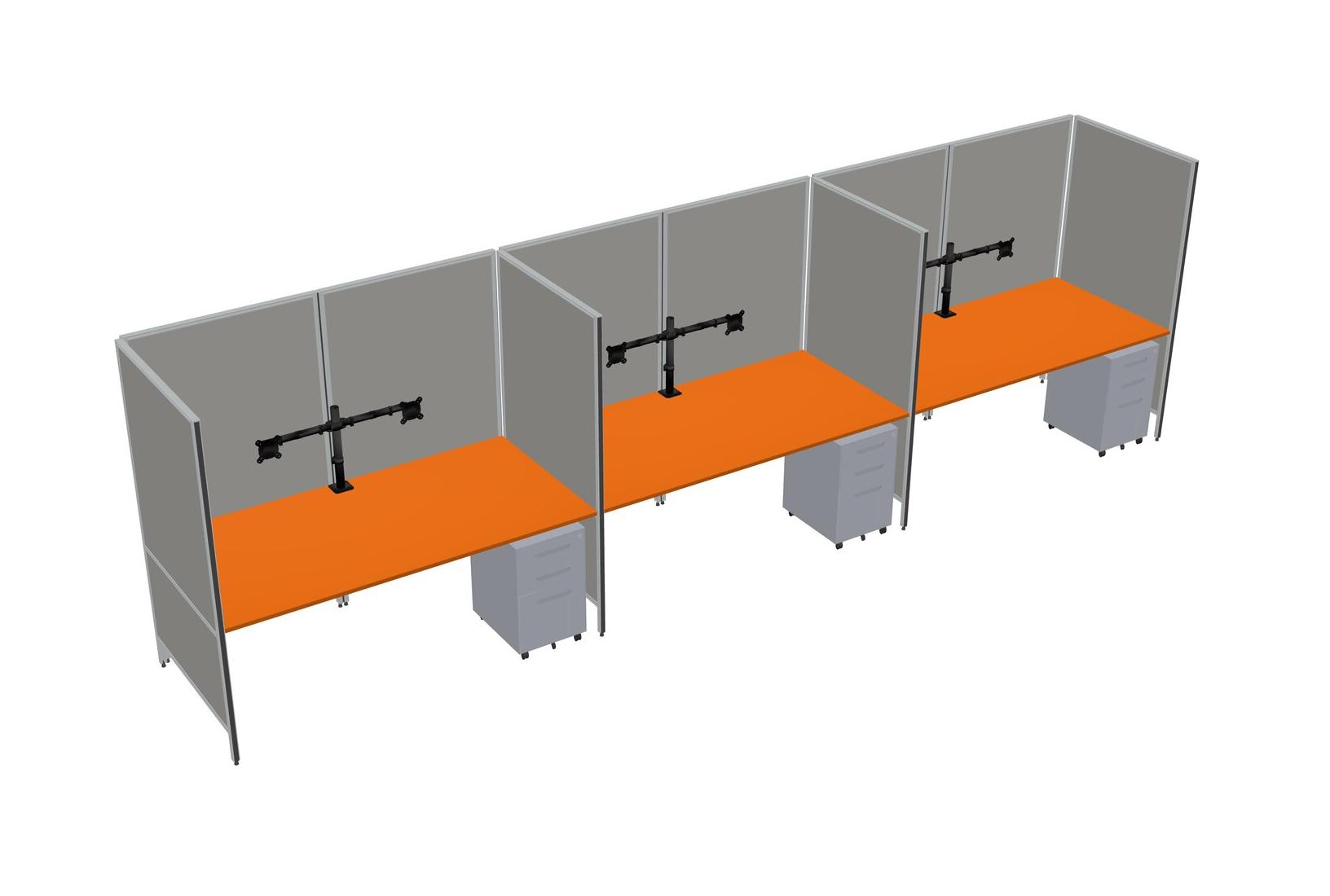 Orange Flexible Panel System For 3 + Metal Mobile Drawers + Monitor Arm (double Arms)