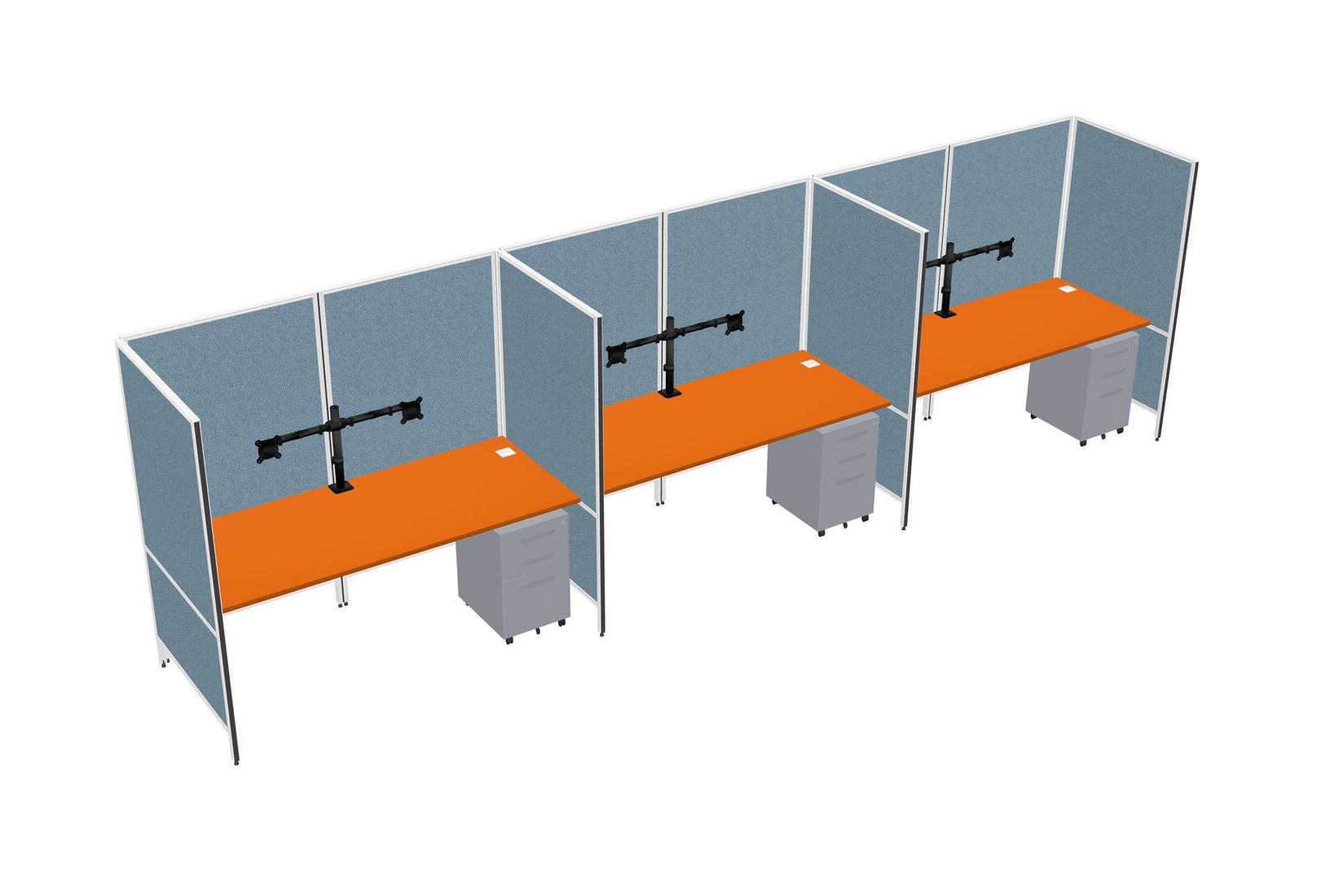 Orange Flexible Panel System For 3 + Metal Mobile Drawers + Monitor Arm (double Arms)