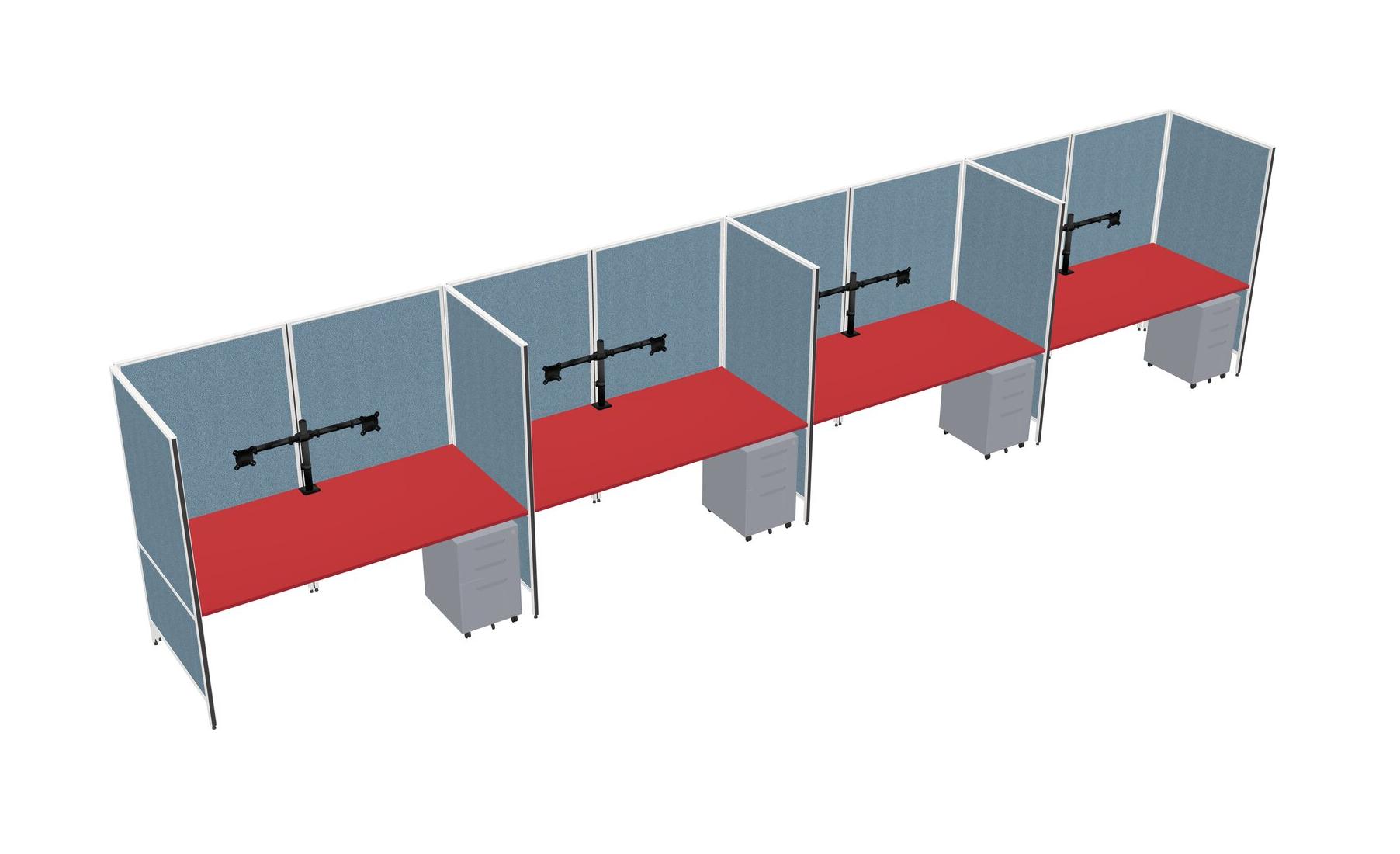Prism Red Flexible Panel System For 4 + Metal Mobile Drawers + Monitor Arm (double Arms)