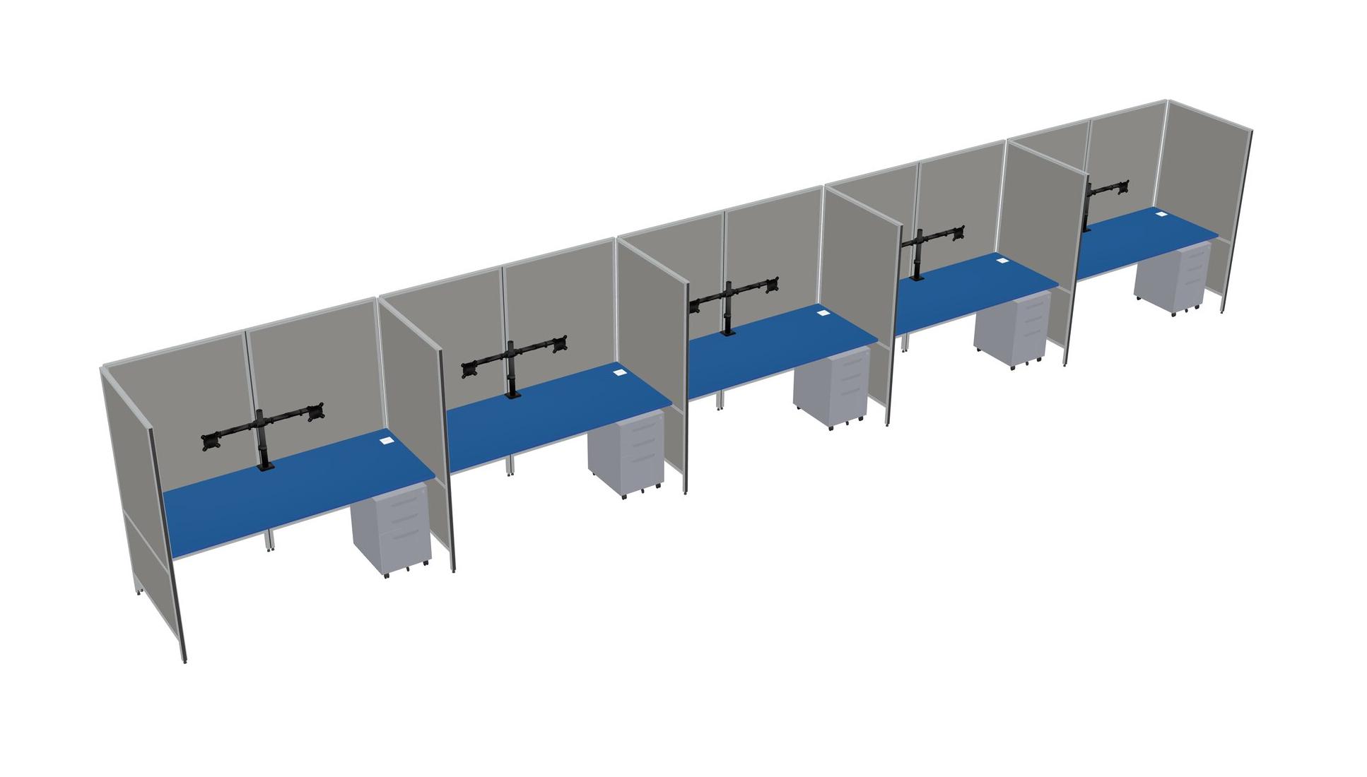 Prism Blue Flexible Panel System For 5 + Metal Mobile Drawers + Monitor Arm (double Arms)