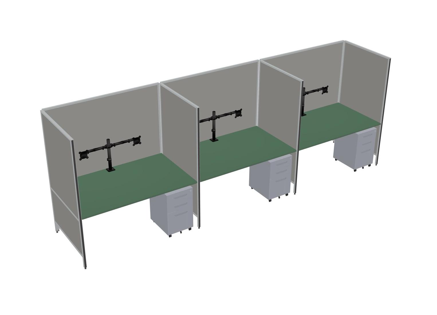 Green Flexible Panel System For 3 + Metal Mobile Drawers + Monitor Arm (double Arms)