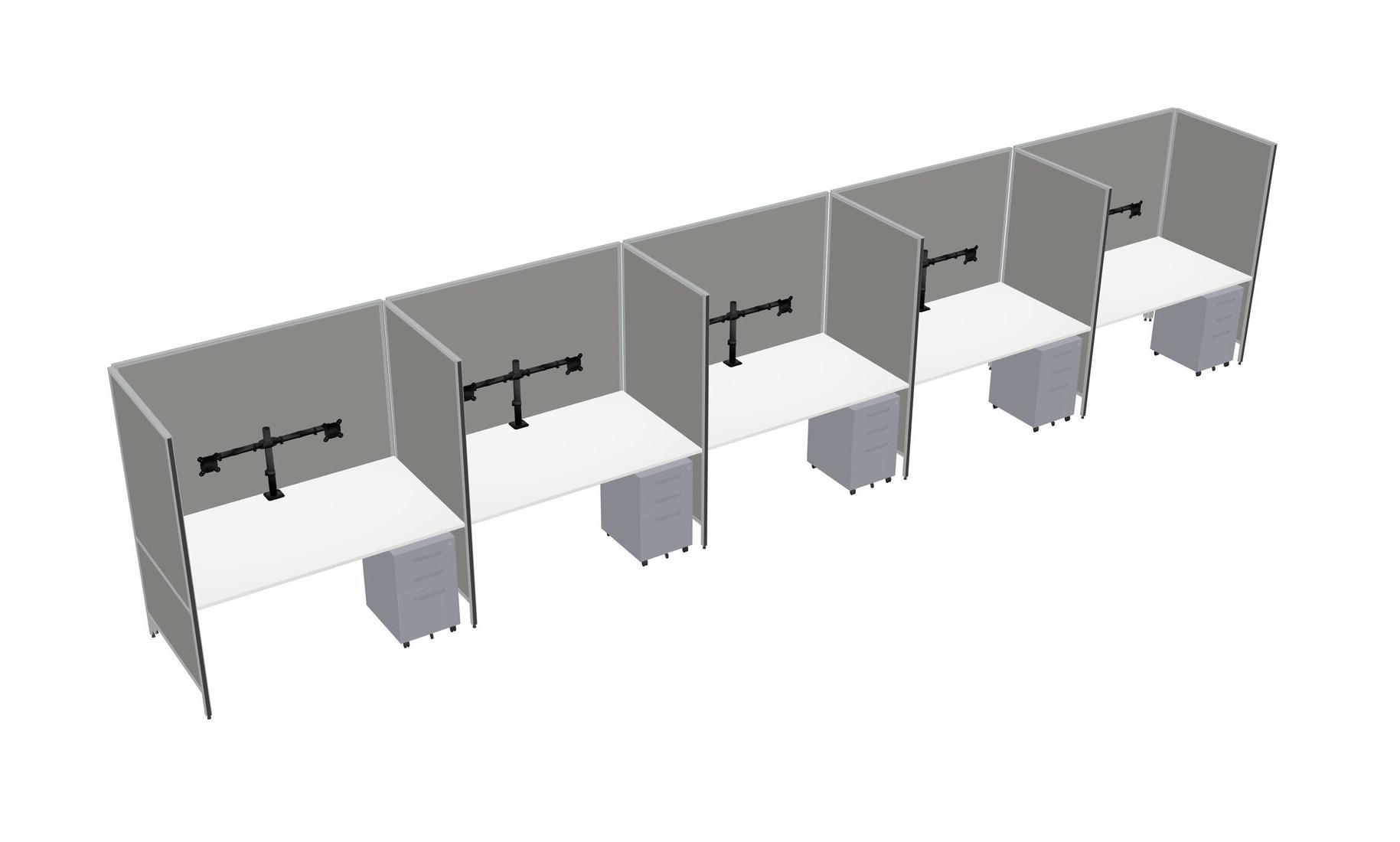 White Flexible Panel System For 5 + Metal Mobile Drawers + Monitor Arm (double Arms)
