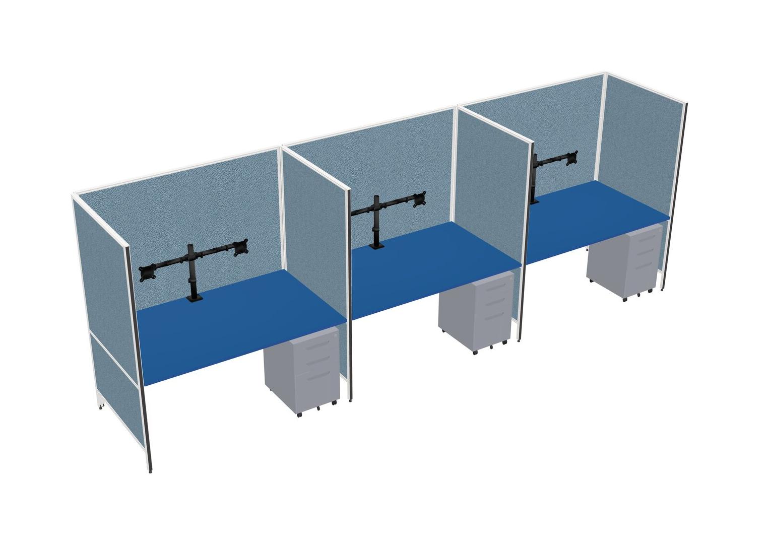 Prism Blue Flexible Panel System For 3 + Metal Mobile Drawers + Monitor Arm (double Arms)