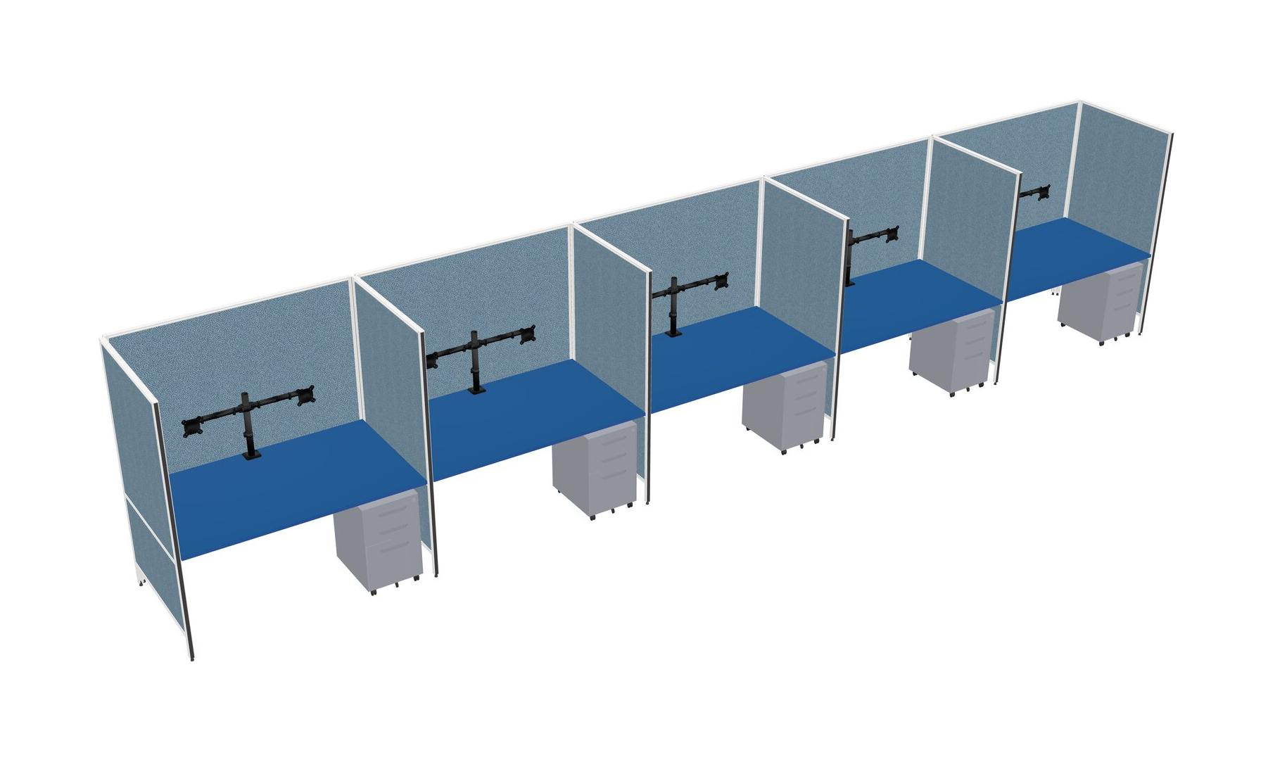 Prism Blue Flexible Panel System For 5 + Metal Mobile Drawers + Monitor Arm (double Arms)