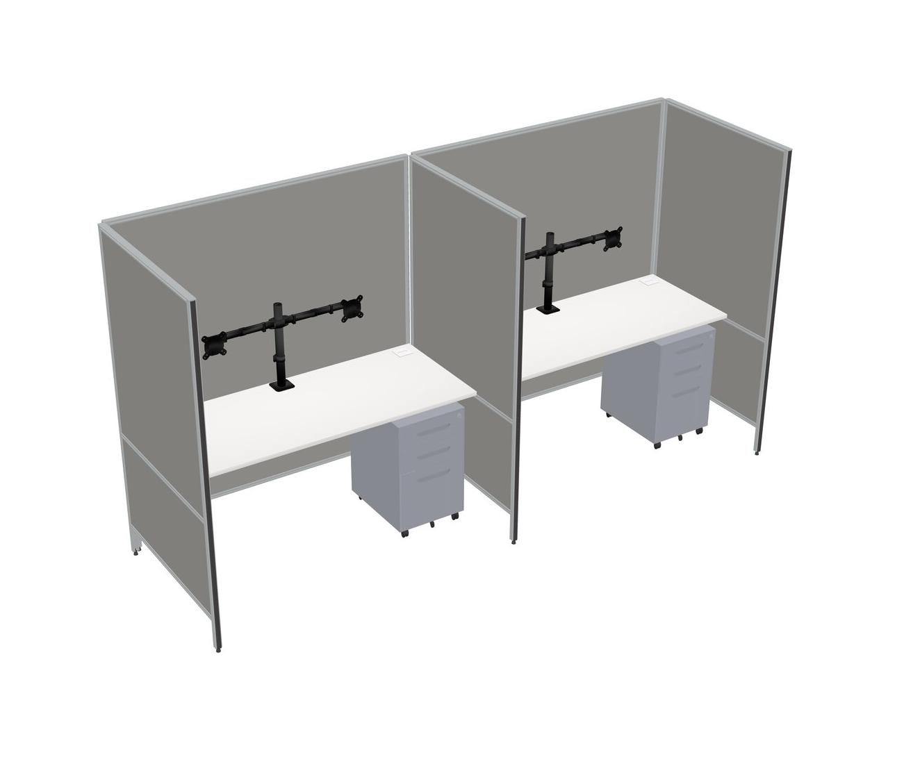 White Flexible Panel System For 2 + Metal Mobile Drawers + Monitor Arm (double Arms)