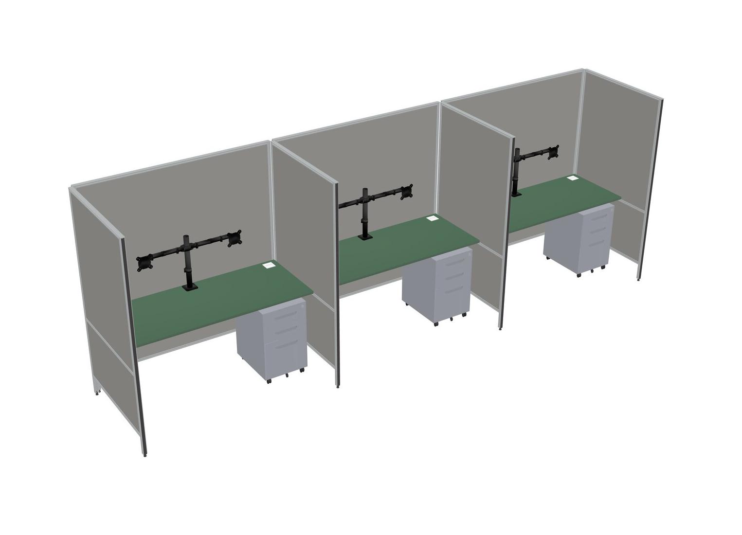 Green Flexible Panel System For 3 + Metal Mobile Drawers + Monitor Arm (double Arms)