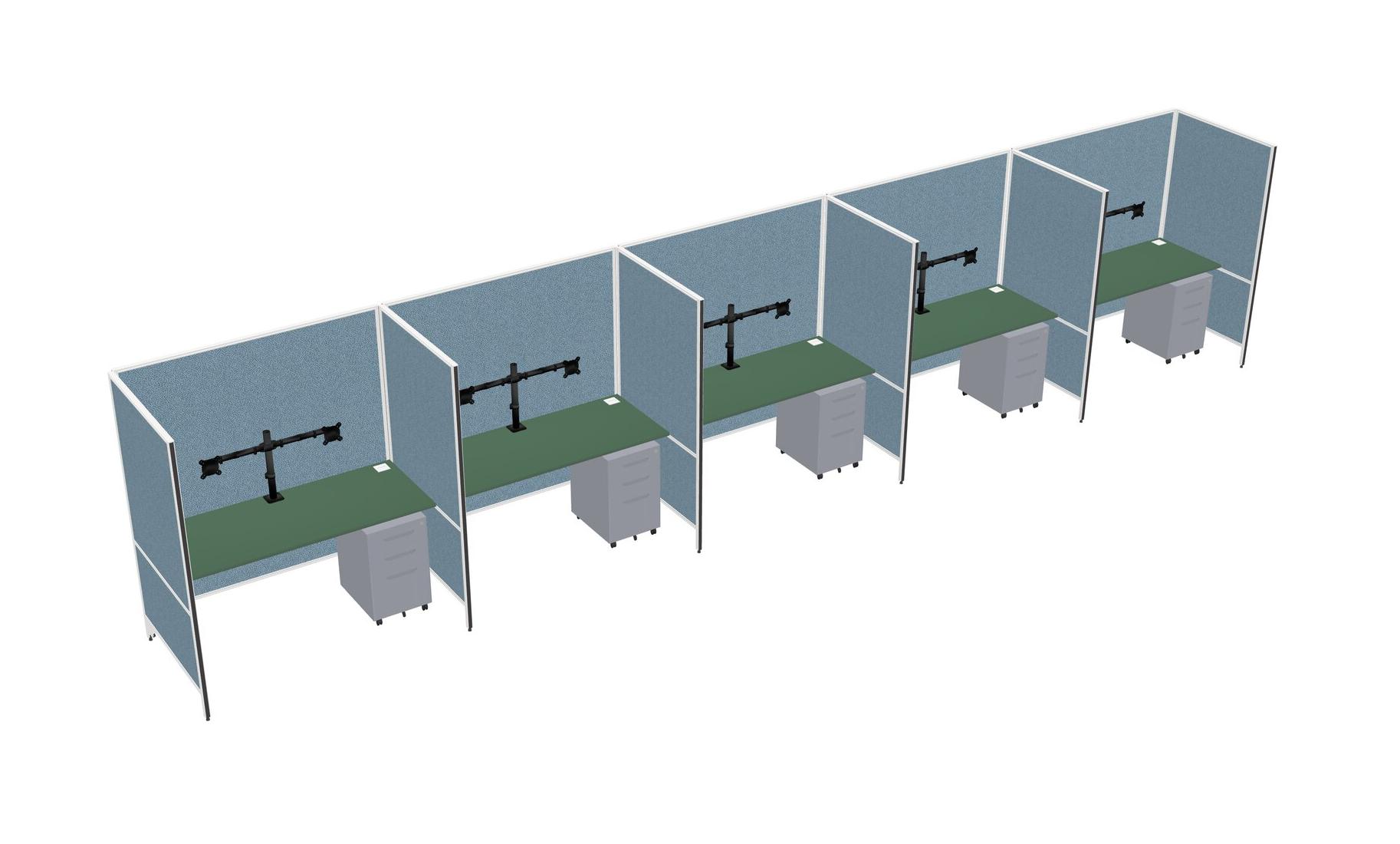 Green Flexible Panel System For 5 + Metal Mobile Drawers + Monitor Arm (double Arms)