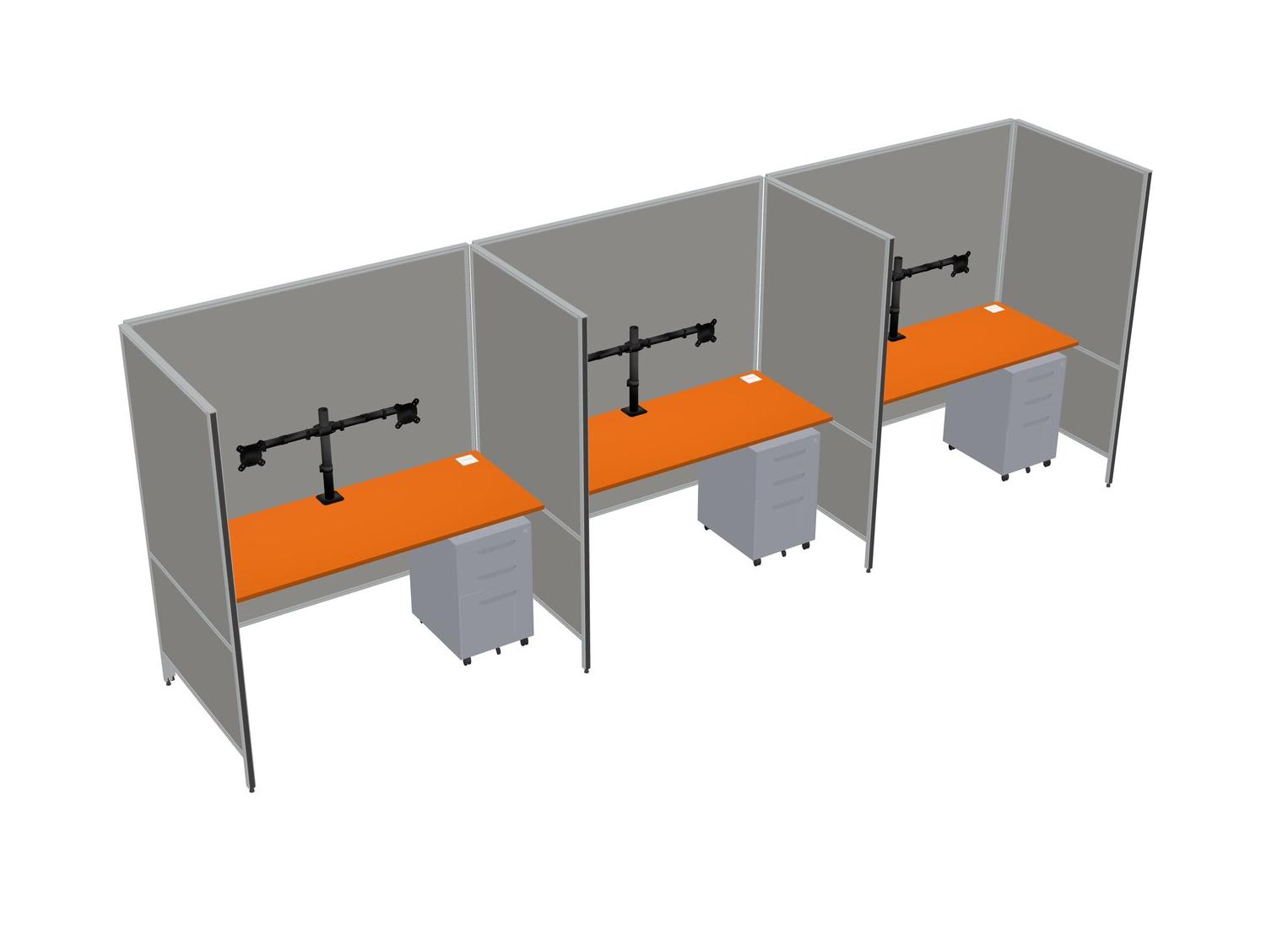 Orange Flexible Panel System For 3 + Metal Mobile Drawers + Monitor Arm (double Arms)