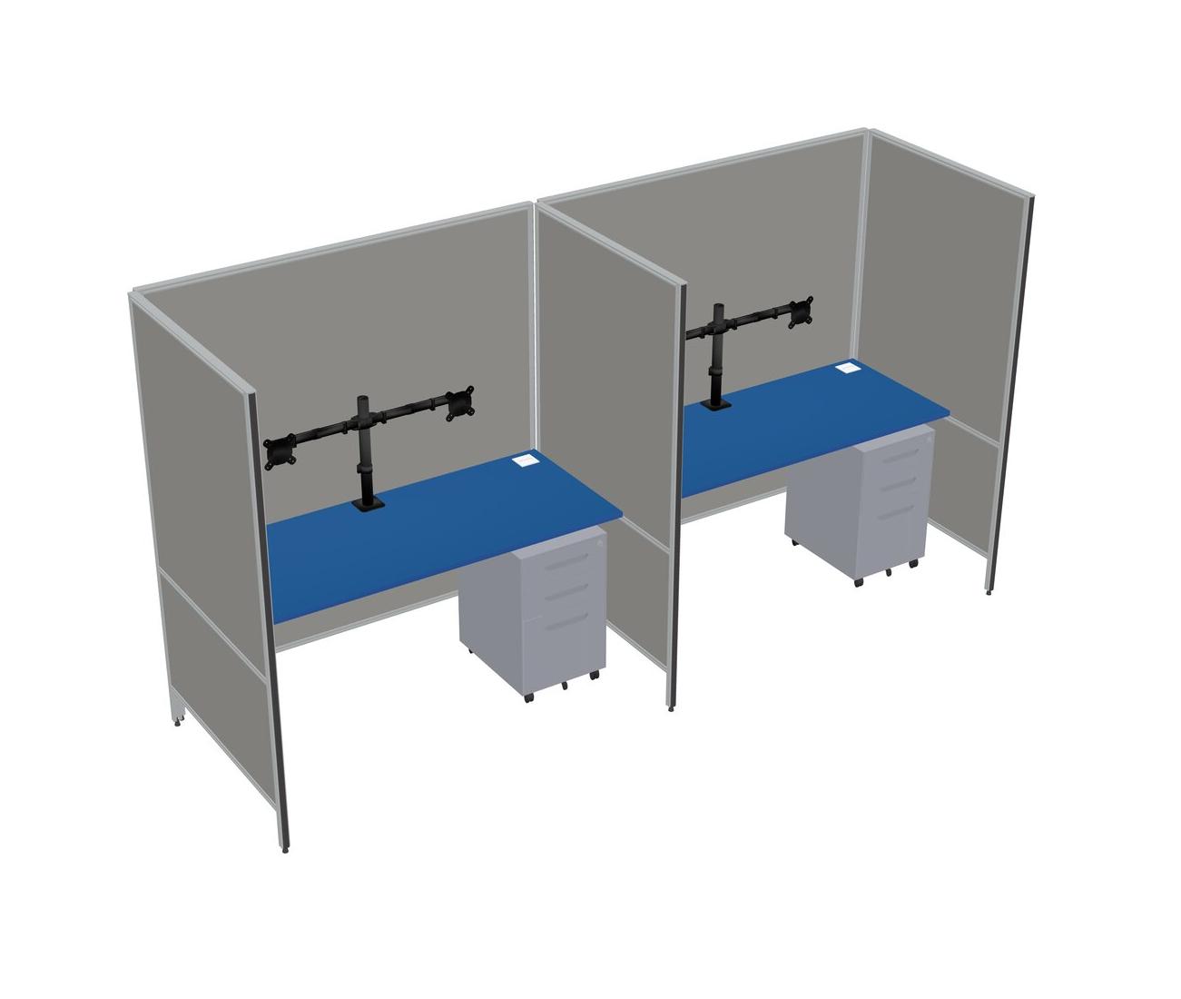 Prism Blue Flexible Panel System For 2 + Metal Mobile Drawers + Monitor Arm (double Arms)