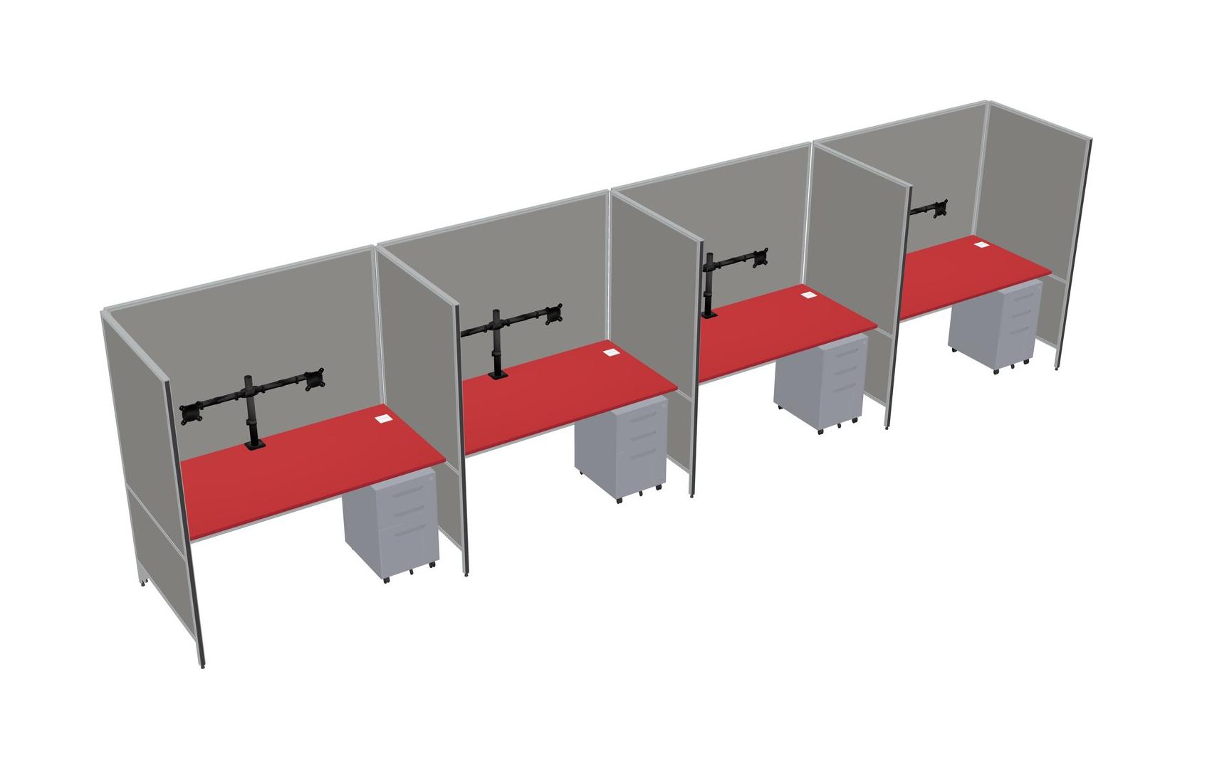 Prism Red Flexible Panel System For 4 + Metal Mobile Drawers + Monitor Arm (double Arms)