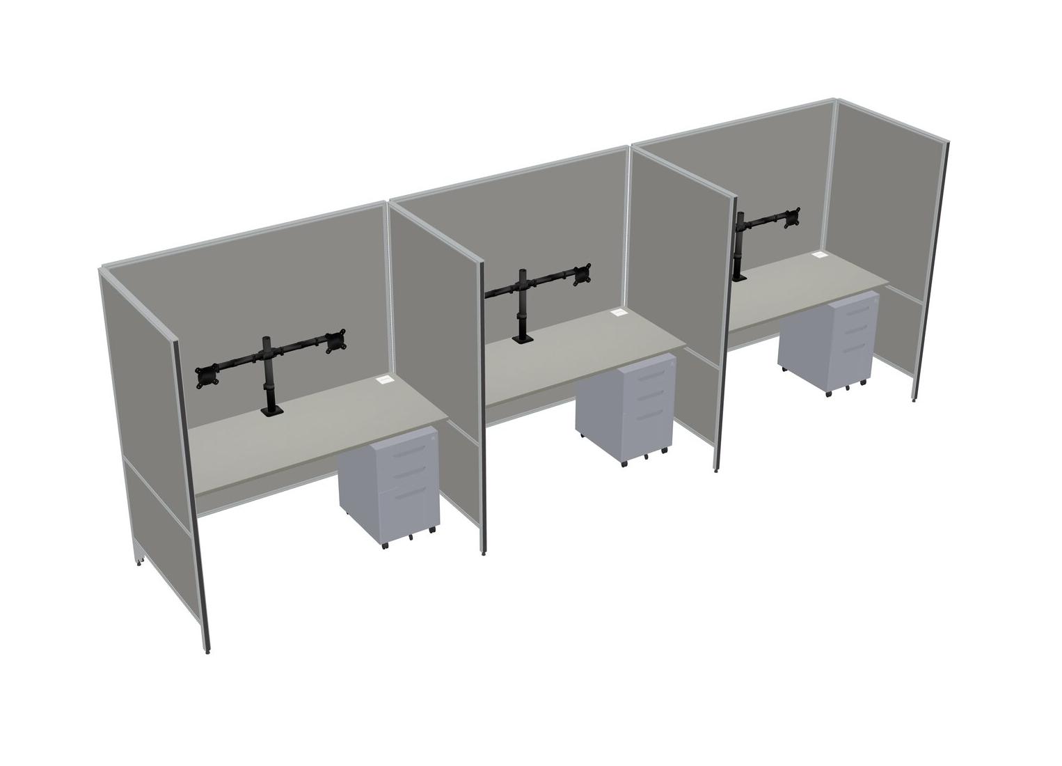 Grey Shadows Flexible Panel System For 3 + Metal Mobile Drawers + Monitor Arm (double Arms)