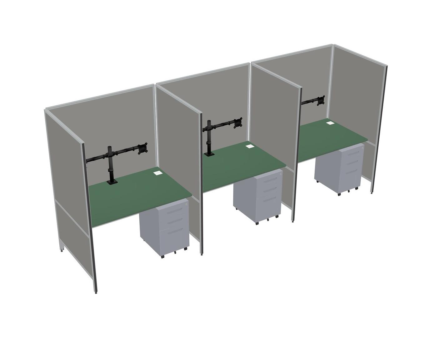Green Flexible Panel System For 3 + Metal Mobile Drawers + Monitor Arm (double Arms)