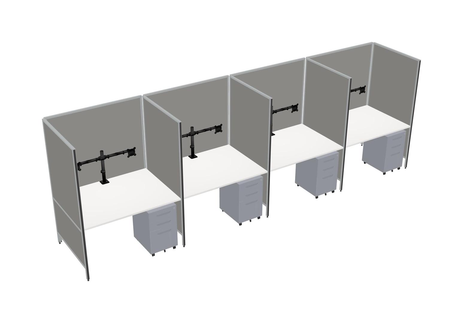 White Flexible Panel System For 4 + Metal Mobile Drawers + Monitor Arm (double Arms)