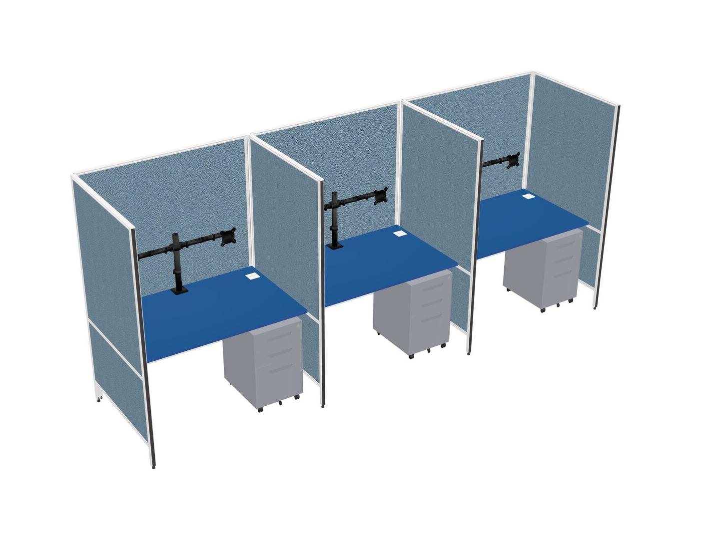 Prism Blue Flexible Panel System For 3 + Metal Mobile Drawers + Monitor Arm (double Arms)
