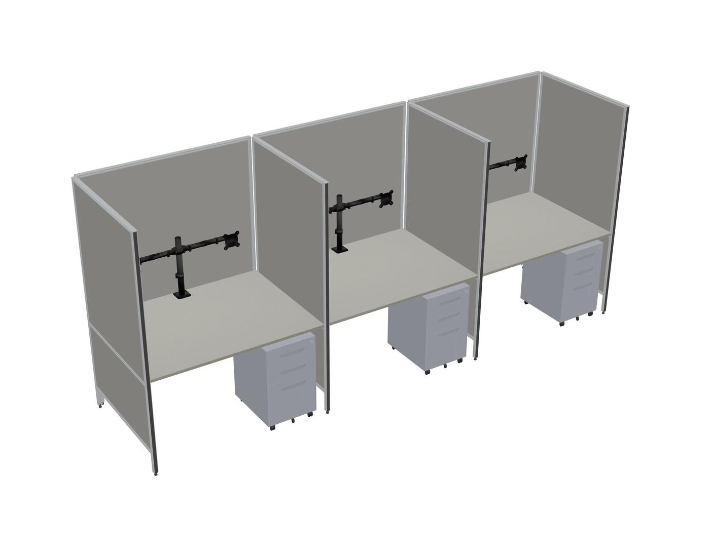 Grey Shadows Flexible Panel System For 3 + Metal Mobile Drawers + Monitor Arm (double Arms)