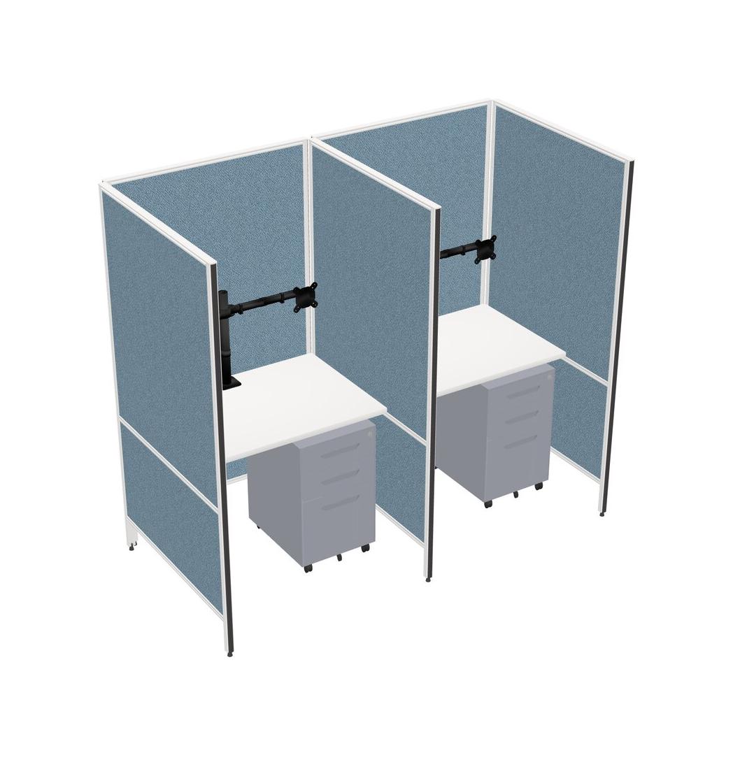 White Flexible Panel System For 2 + Metal Mobile Drawers + Monitor Arm (double Arms)