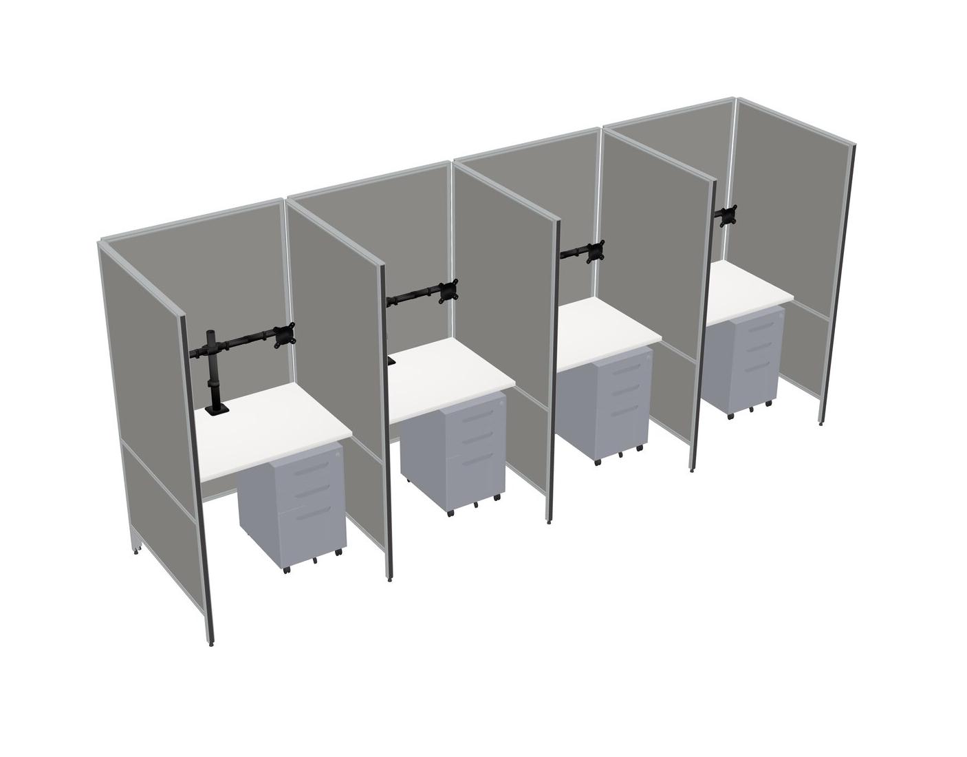 White Flexible Panel System For 4 + Metal Mobile Drawers + Monitor Arm (double Arms)