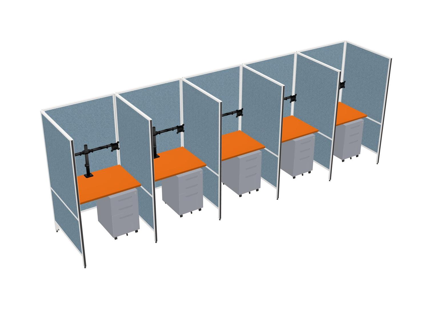 Orange Flexible Panel System For 5 + Metal Mobile Drawers + Monitor Arm (double Arms)