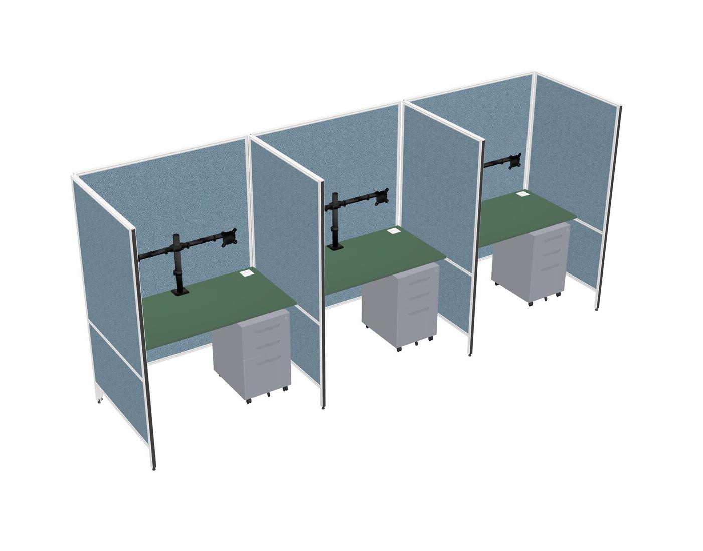 Green Flexible Panel System For 3 + Metal Mobile Drawers + Monitor Arm (double Arms)