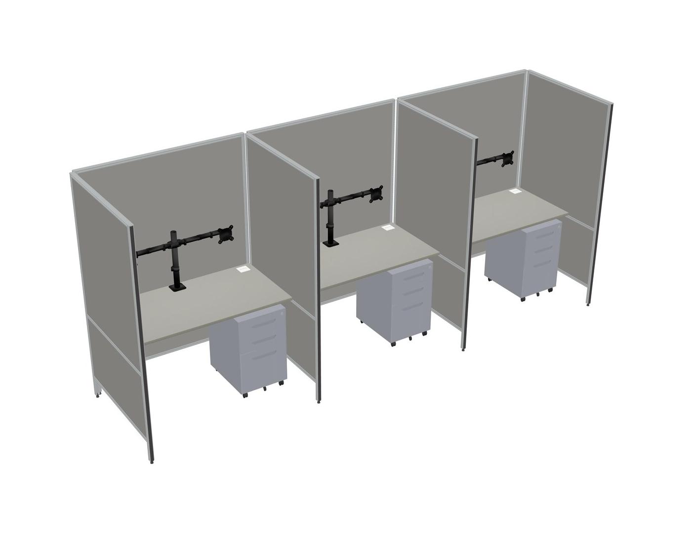 Grey Shadows Flexible Panel System For 3 + Metal Mobile Drawers + Monitor Arm (double Arms)
