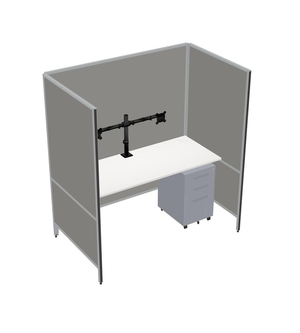 White Flexible Panel System For 1 + Metal Mobile Drawers + Monitor Arm (double Arms)