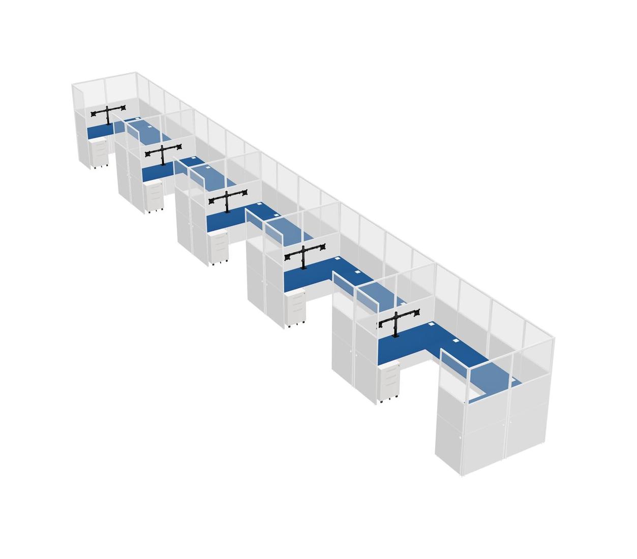 Prism Blue U-shaped Panel System For 5 Person + Monitor Arm (double Arms) + Metal Mobile Drawers For 5 User(s)