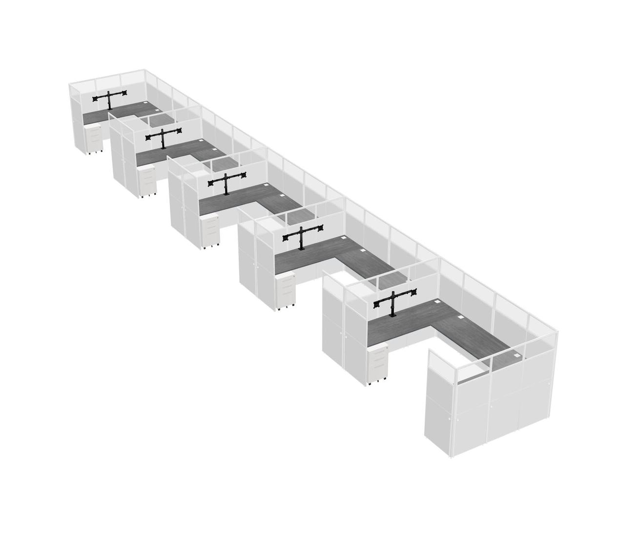 Grey U-shaped Panel System For 5 Person + Monitor Arm (double Arms) + Metal Mobile Drawers For 5 User(s)