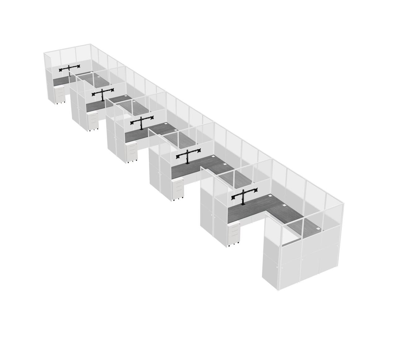 Grey U-shaped Panel System For 5 Person + Monitor Arm (double Arms) + Metal Mobile Drawers For 5 User(s)