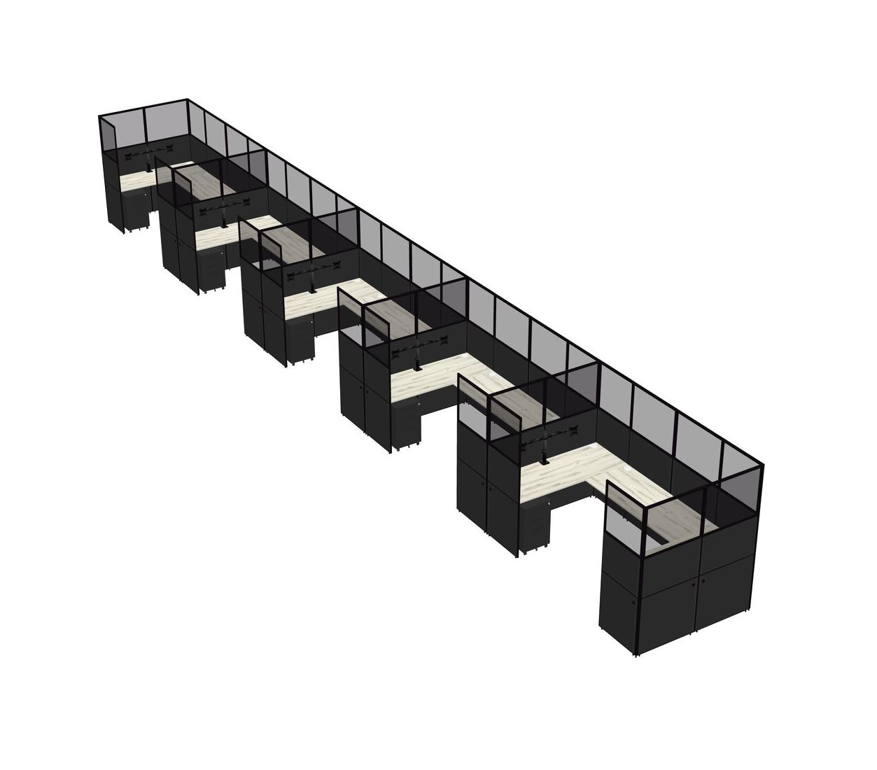 Heinne Holz U-shaped Panel System For 5 Person + Monitor Arm (double Arms) + Metal Mobile Drawers For 5 User(s)