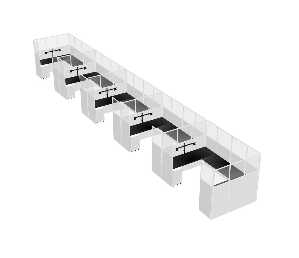 Black U-shaped Panel System For 5 Person + Monitor Arm (double Arms) + Metal Mobile Drawers For 5 User(s)