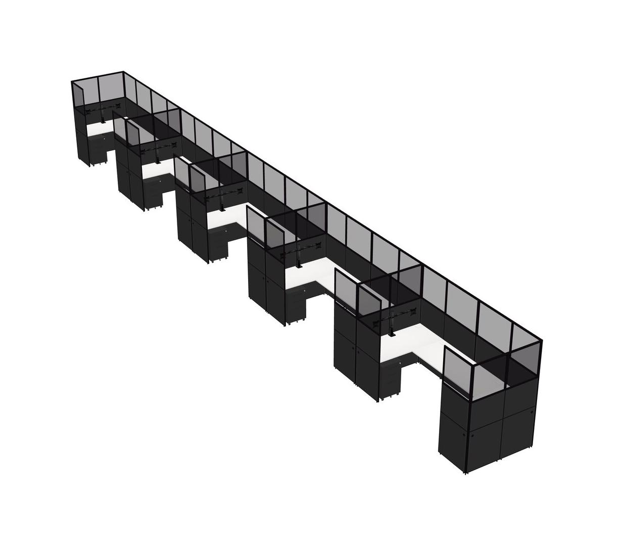White U-shaped Panel System For 5 Person + Monitor Arm (double Arms) + Metal Mobile Drawers For 5 User(s)