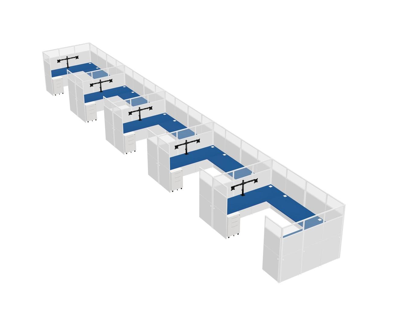 Prism Blue U-shaped Panel System For 5 Person + Monitor Arm (double Arms) + Metal Mobile Drawers For 5 User(s)