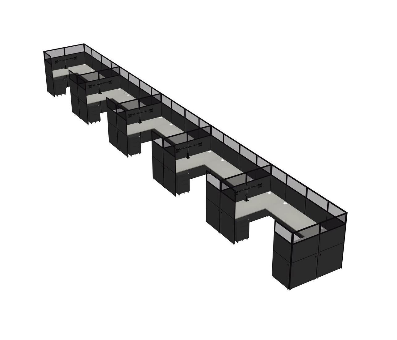 Grey Shadows U-shaped Panel System For 5 Person + Monitor Arm (double Arms) + Metal Mobile Drawers For 5 User(s)