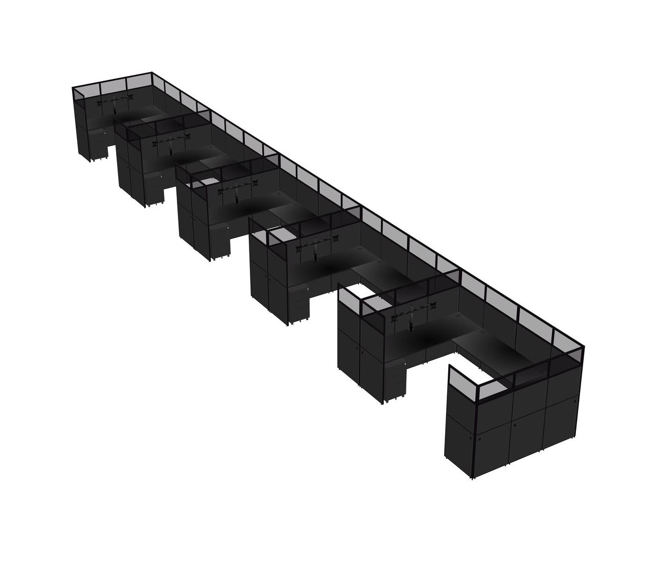 Black U-shaped Panel System For 5 Person + Monitor Arm (double Arms) + Metal Mobile Drawers For 5 User(s)