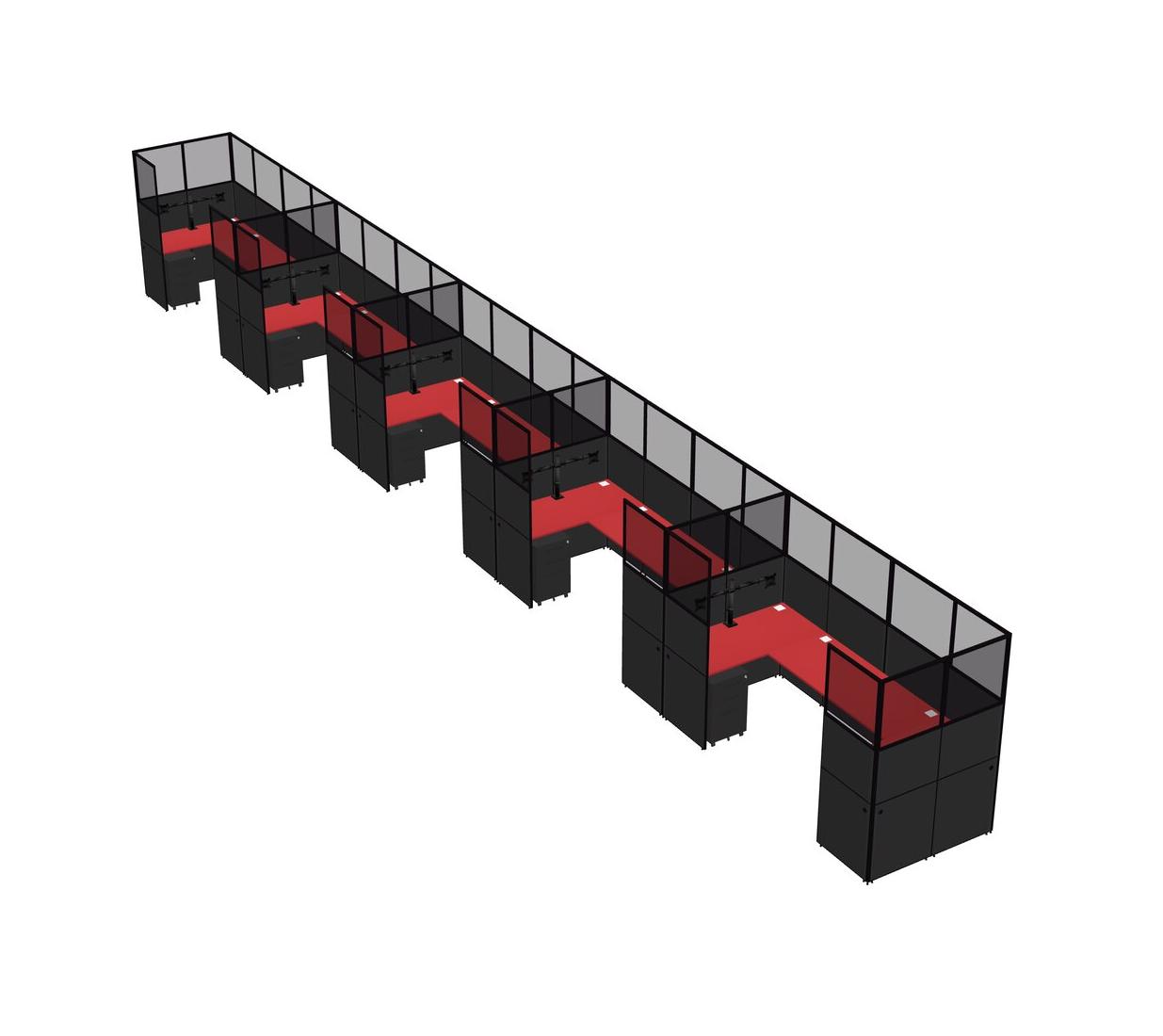 Prism Red U-shaped Panel System For 5 Person + Monitor Arm (double Arms) + Metal Mobile Drawers For 5 User(s)