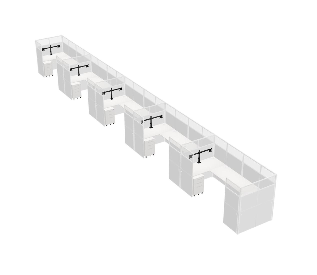White U-shaped Panel System For 5 Person + Monitor Arm (double Arms) + Metal Mobile Drawers For 5 User(s)