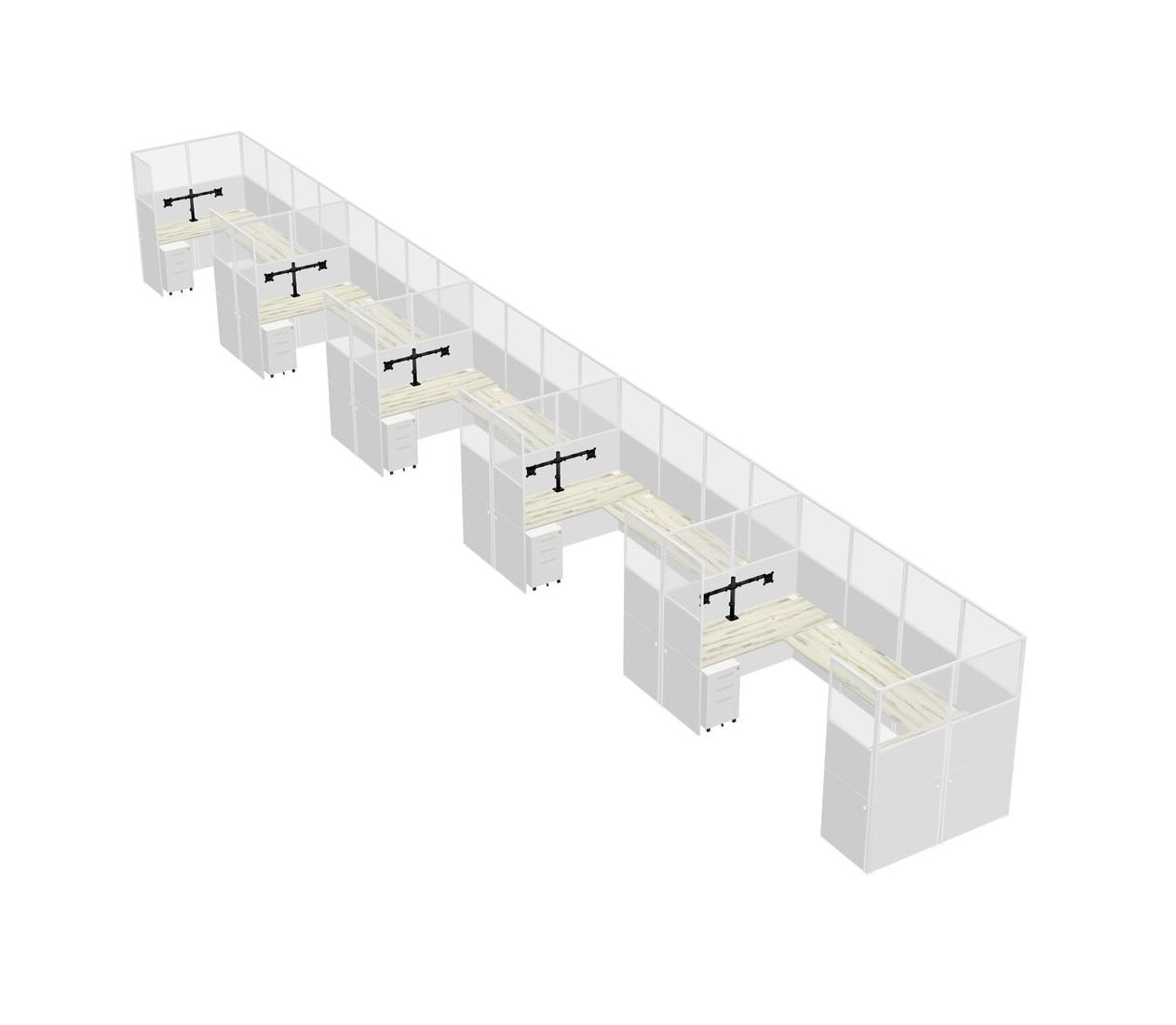 Heinne Holz U-shaped Panel System For 5 Person + Monitor Arm (double Arms) + Metal Mobile Drawers For 5 User(s)