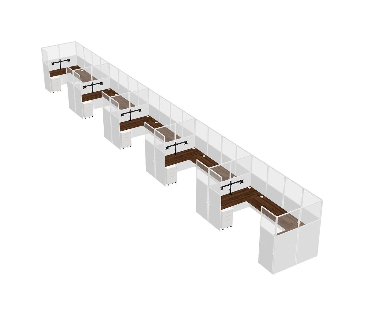 Columbia Walnut U-shaped Panel System For 5 Person + Monitor Arm (double Arms) + Metal Mobile Drawers For 5 User(s)