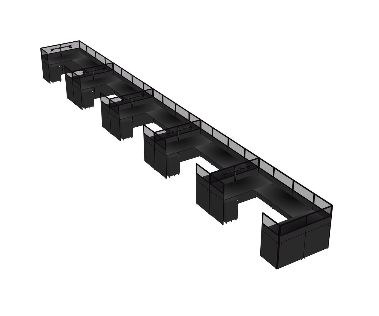 Black U-shaped Panel System For 5 Person + Monitor Arm (double Arms) + Metal Mobile Drawers For 5 User(s)