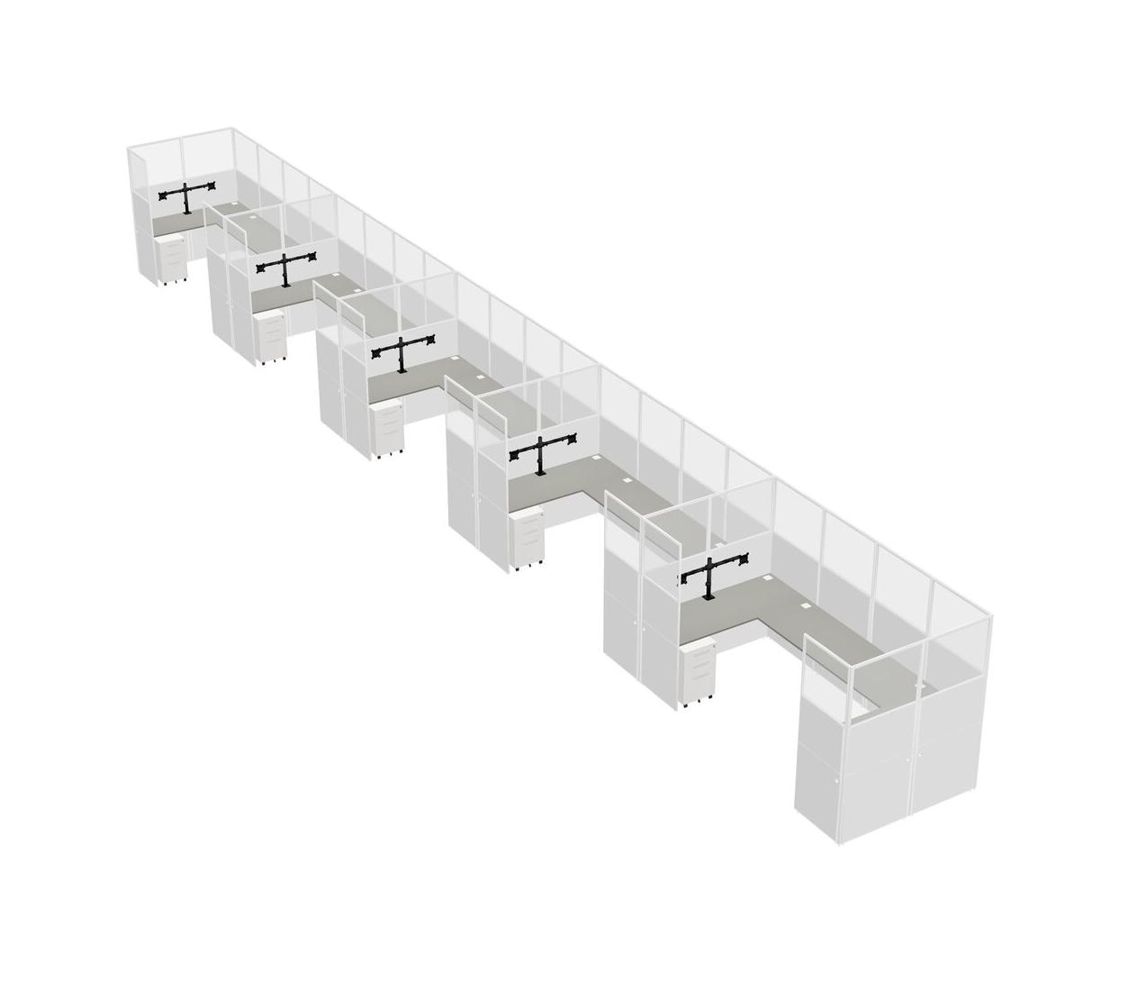 Grey Shadows U-shaped Panel System For 5 Person + Monitor Arm (double Arms) + Metal Mobile Drawers For 5 User(s)