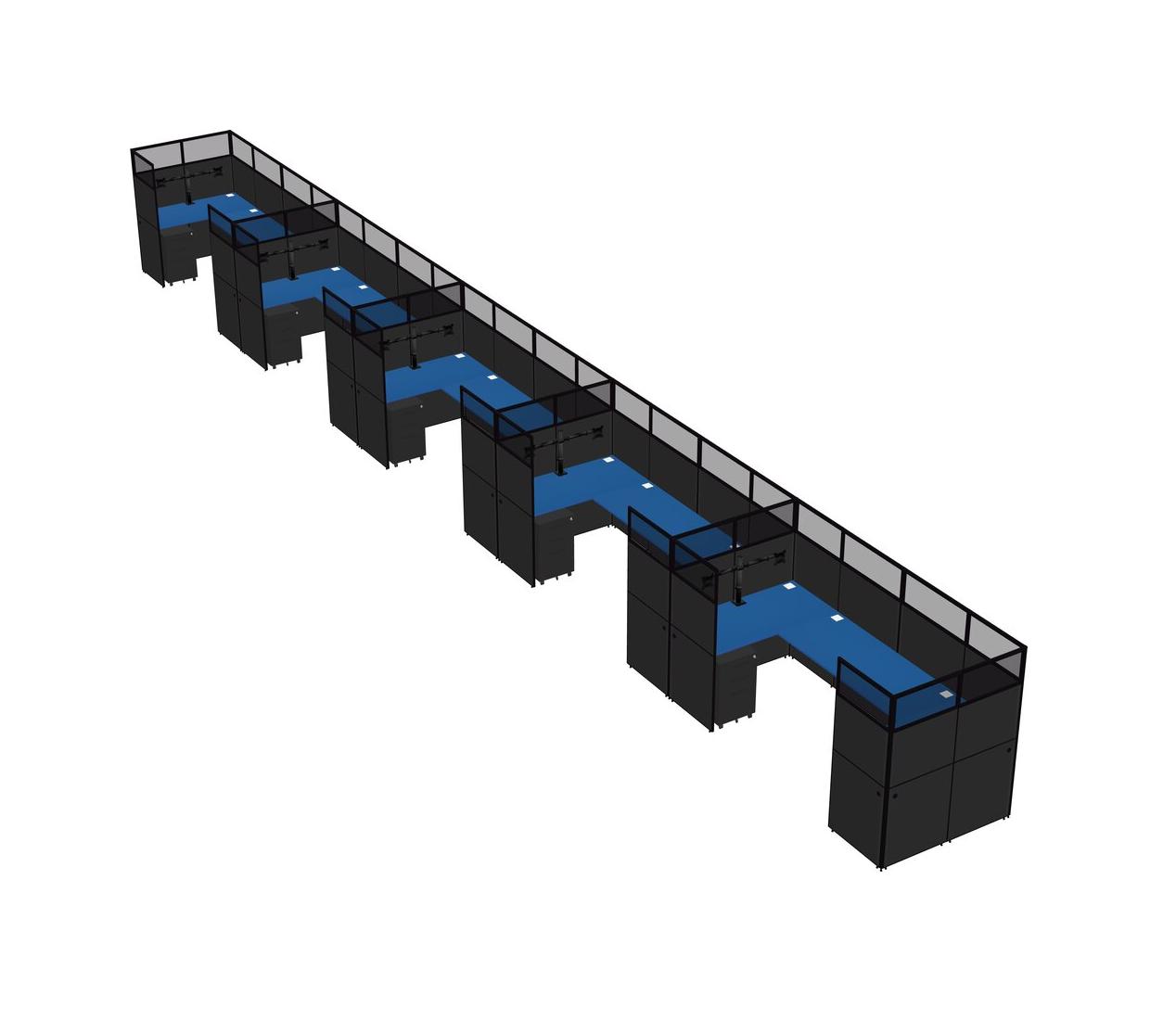 Prism Blue U-shaped Panel System For 5 Person + Monitor Arm (double Arms) + Metal Mobile Drawers For 5 User(s)