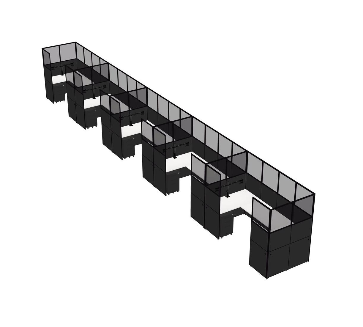 White U-shaped Panel System For 5 Person + Monitor Arm (double Arms) + Metal Mobile Drawers For 5 User(s)